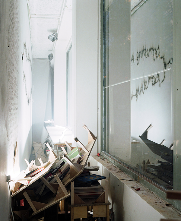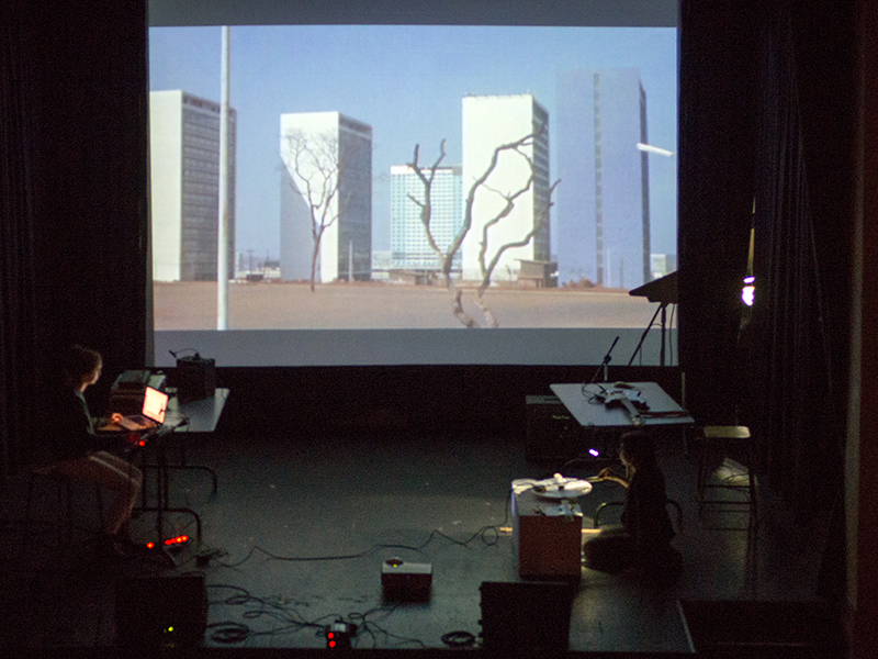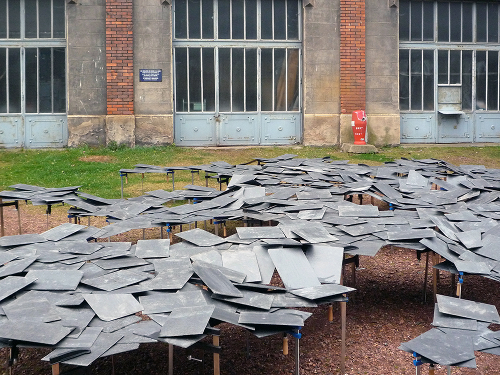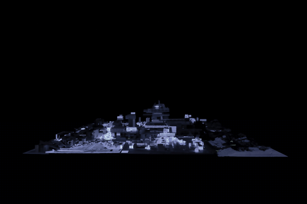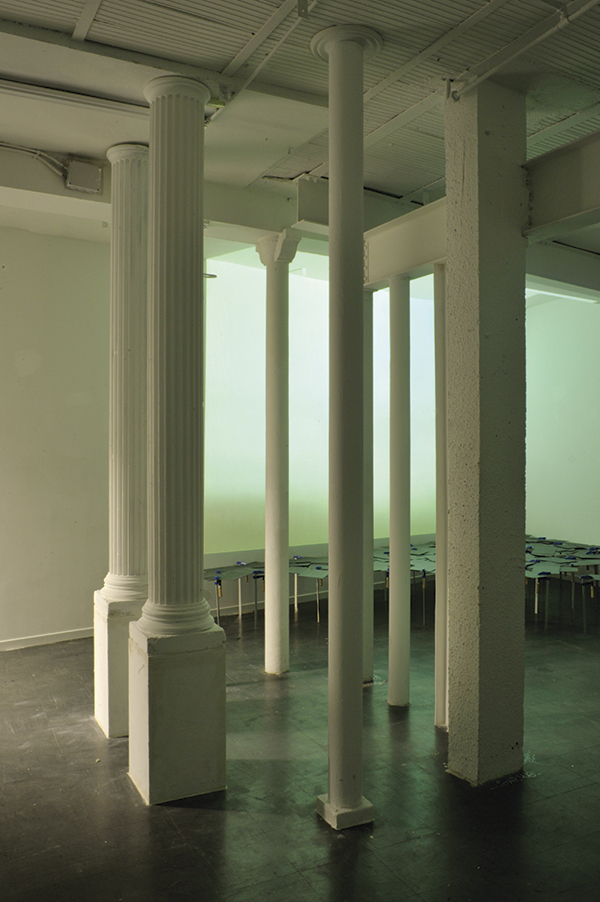 Contreplaqué, polycarbonate, résines colorées, vidéo-projection